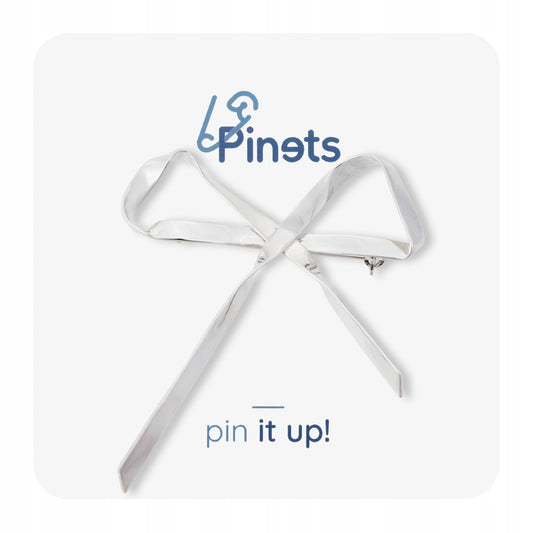 Broszka duża kokarda srebrna miedziana z połyskiem stylowa przypinka