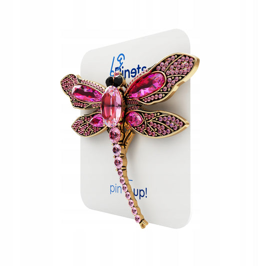 PINETS DRAGONFLY Brosche, goldfarben, rosa Zirkone