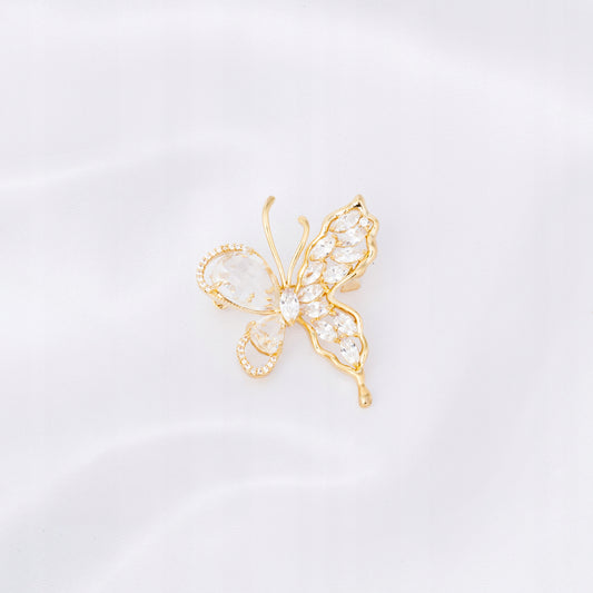 Pozłacana broszka MOTYL asymetryczny z cyrkoniami ozdoba Pinets