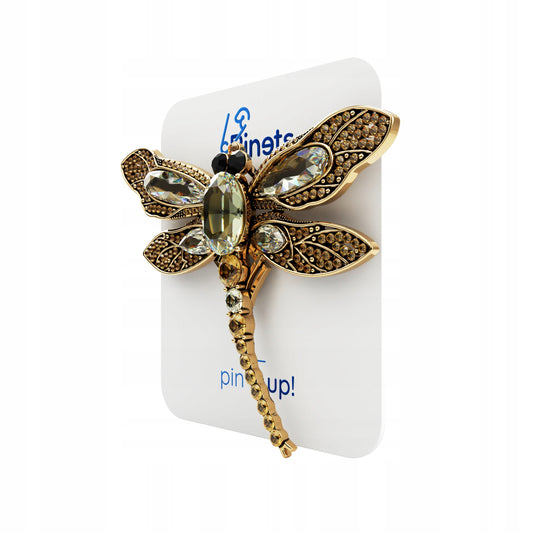 PINETS DRAGONFLY Brosche, goldfarben, Bernstein, Zirkone