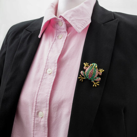 PINETS Froschbrosche mit Zirkonia Grüner und rosa Frosch
