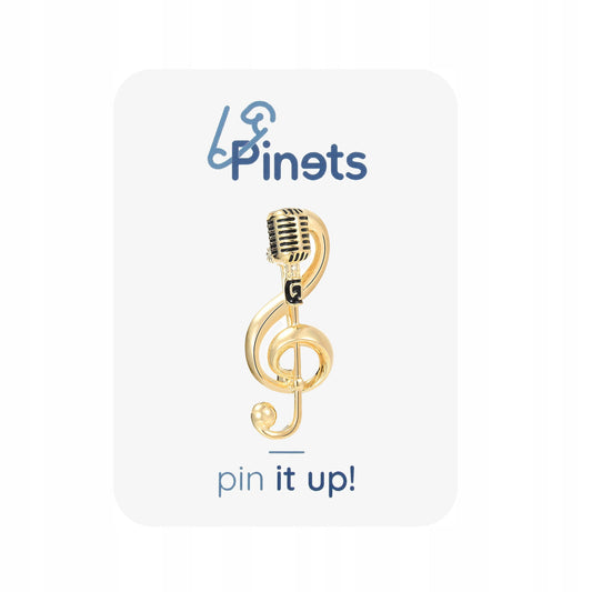 Musikalische Violinschlüssel-Mikrofonbrosche, vergoldet