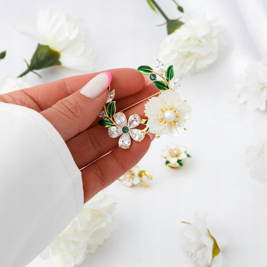 Elegancka Pozłacana broszka Pinets białe kwiaty z cyrkoniami