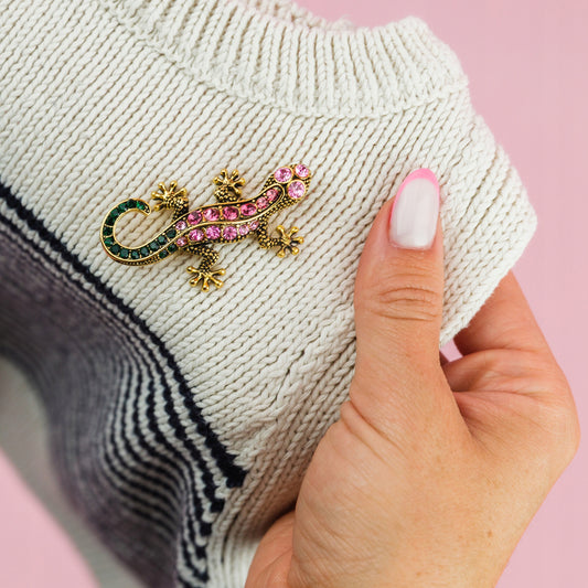 Gekon Jaszczurka broszka Pinets z różowymi i zielonymi cyrkoniami Złota