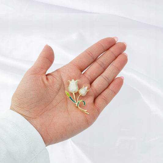 Pozłacane Tulipany broszka Pinets delikatna ozdoba z cyrkoniami