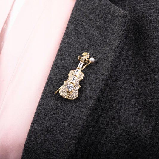 Pozłacane Skrzypce broszka Pinets z cyrkoniami muzyczna ozdoba