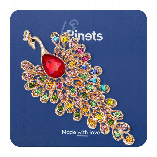 Pfau mit Zirkonen und beweglichem Schwanz – goldene Brosche