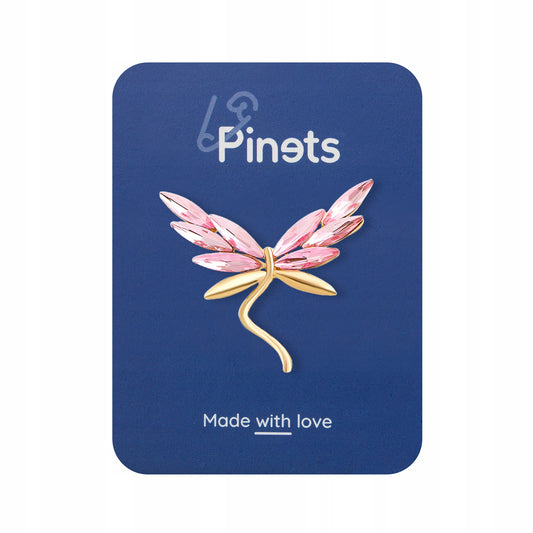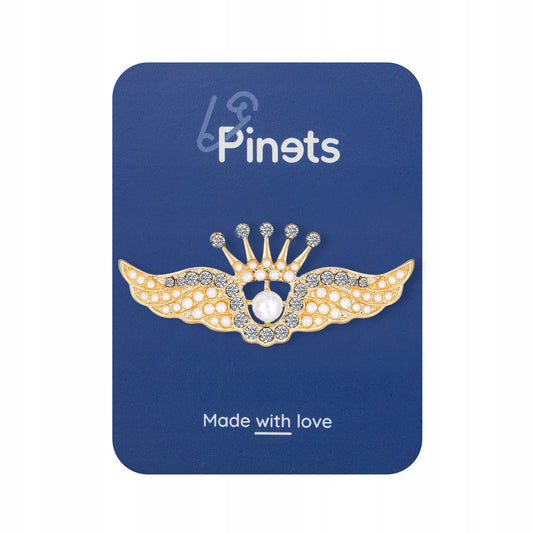 Flügel mit einer Krone - goldene Brosche mit Zirkonen und einer Perle