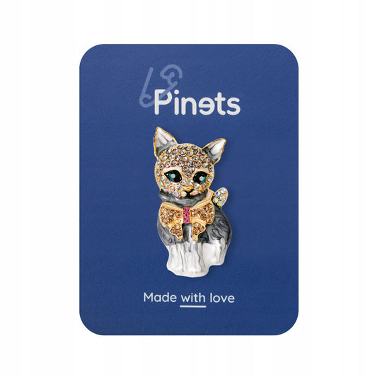 Schwarze Kätzchenbrosche mit Zirkonia
