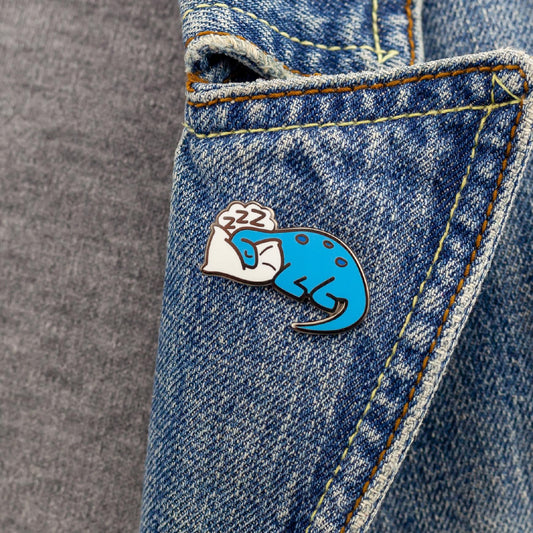 Blauer Dinosaurier schläft auf einem Kissen - Abzeichen für ein Kind