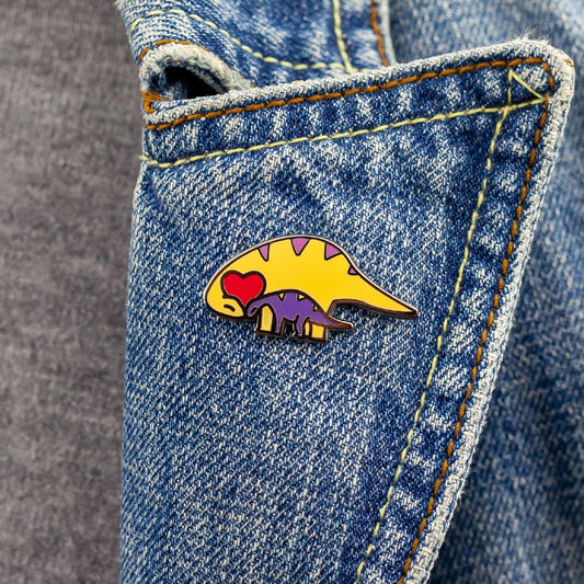 Oranger Dinosaurier - Eine süße Anstecknadel für ein Kind