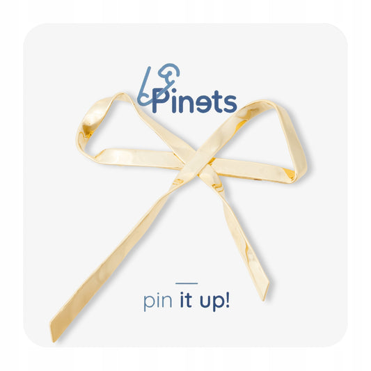 Pozłacana broszka duża kokarda złoty połysk stylowa przypinka