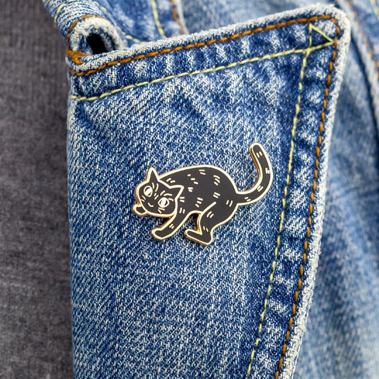 Bonifatius der Schwarze Kater - Anstecknadel mit vergoldeten Konturen