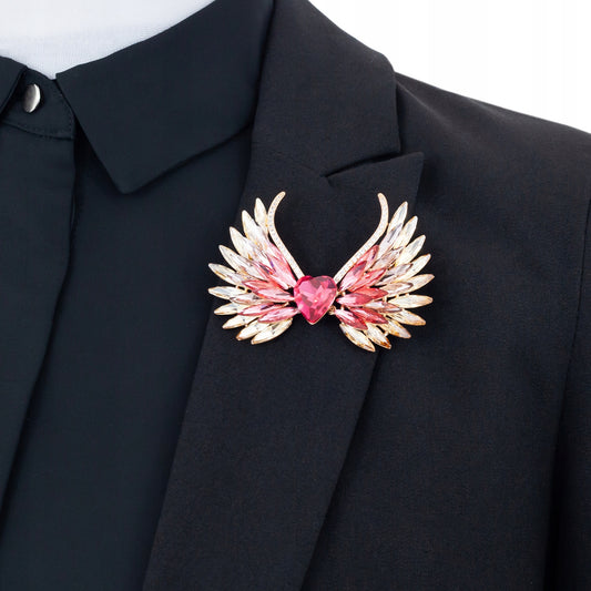 Spektakuläre österreichische Kristallbrosche Flügel HERZ Gold