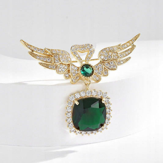 AusverkauftVergoldete, mit Zirkonen besetzte Flügelbrosche