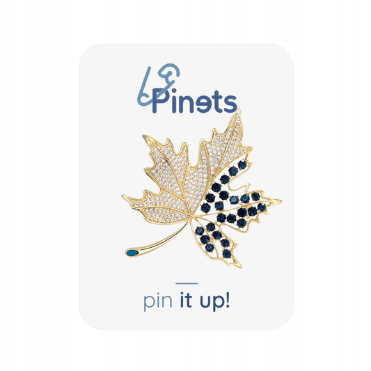Vergoldete Blattbrosche mit weißen und blauen Zirkonen