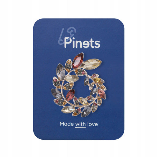Kranz mit Blättern - Brosche mit Zirkonen verziert