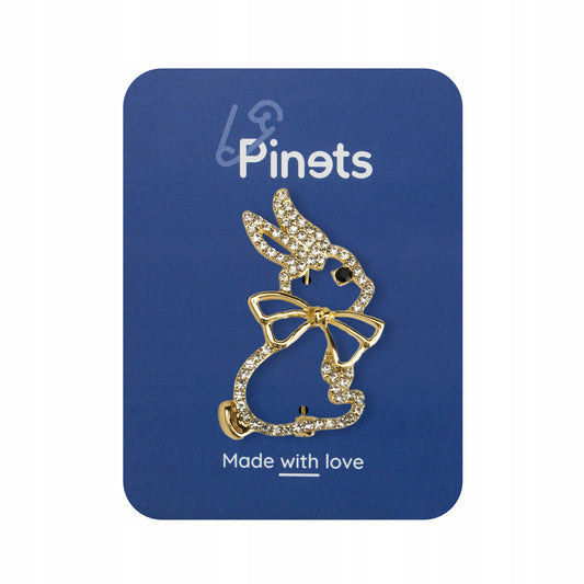 Hase mit Schleife - Goldbrosche mit Zirkonia