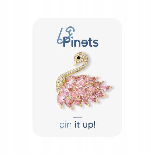 Rosa Schwan - 14 Karat vergoldete Brosche