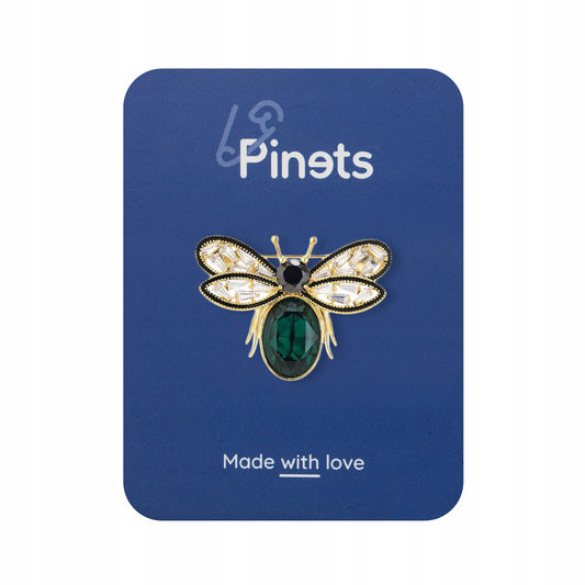 Goldene Fliege mit grünem Hinterleib - 14K vergoldete Brosche