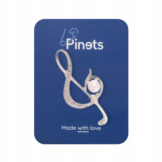 Violinschlüssel - Brosche mit Zirkonen und einer Perle
