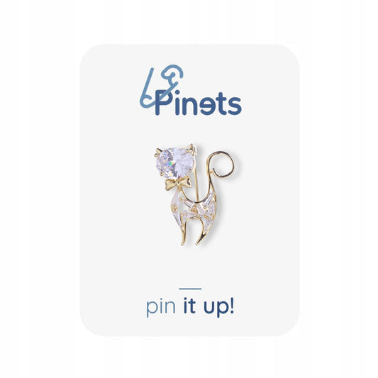 Goldenes Kätzchen mit Schleife - Brosche mit Zirkonia