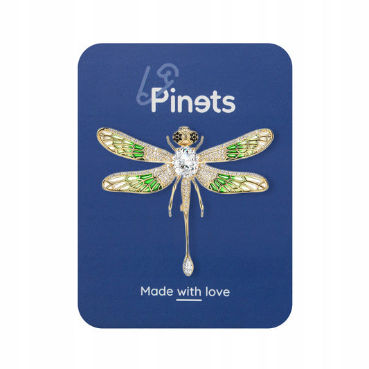 Grüne Libelle mit Zirkonia – 14 Karat vergoldete Brosche
