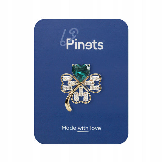 Goldenes Kleeblatt mit grünem Herz - Brosche mit Zirkonia
