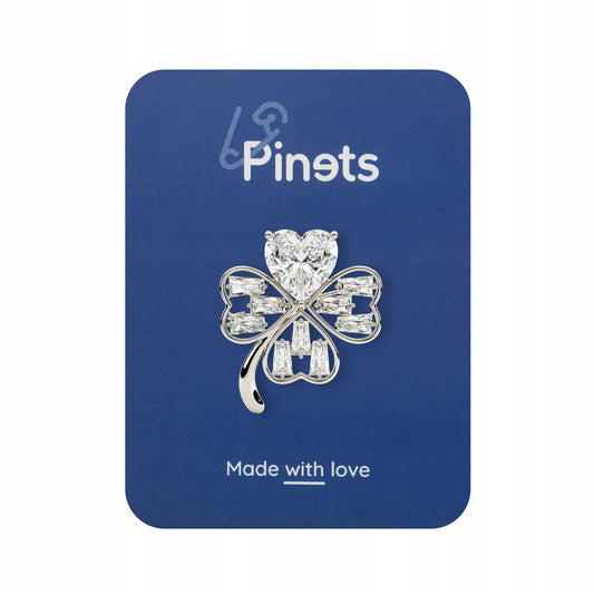Silbernes Kleeblatt mit weißen Zirkonen und einem Herz - eine Glücksbrosche