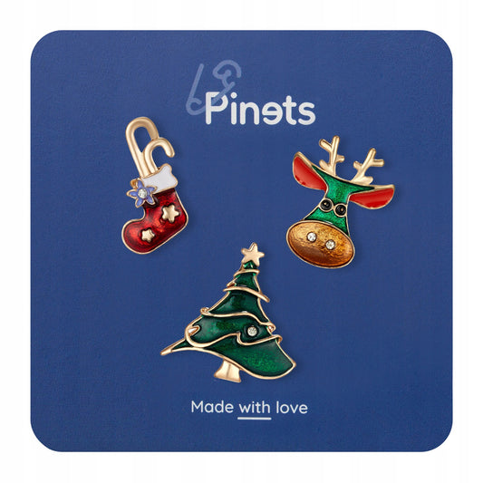 3er-Set Weihnachtsnadeln: Rentier, Weihnachtsbaum, Strumpf