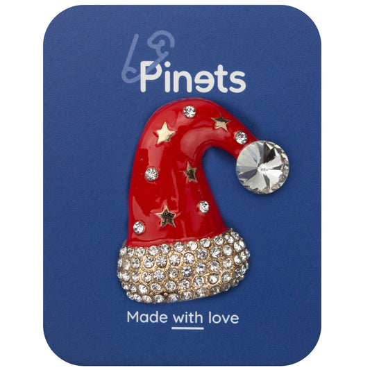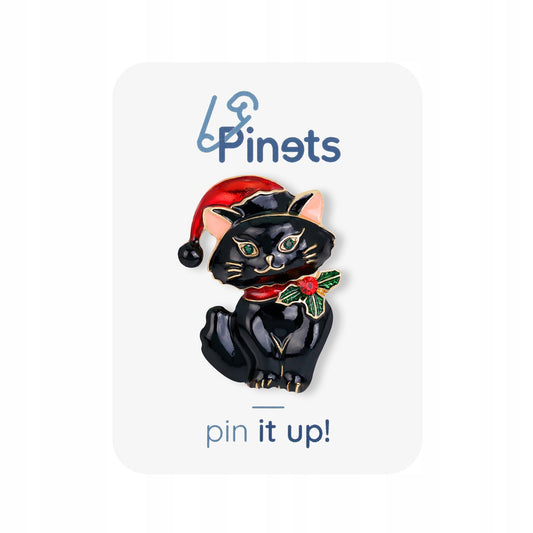Weihnachtskätzchen mit Weihnachtsmannmütze - dekorative Brosche für die Feiertage