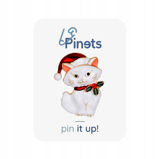 Weihnachtsweißes Kätzchen mit Weihnachtsmannmütze - dekorative Brosche für die Feiertage