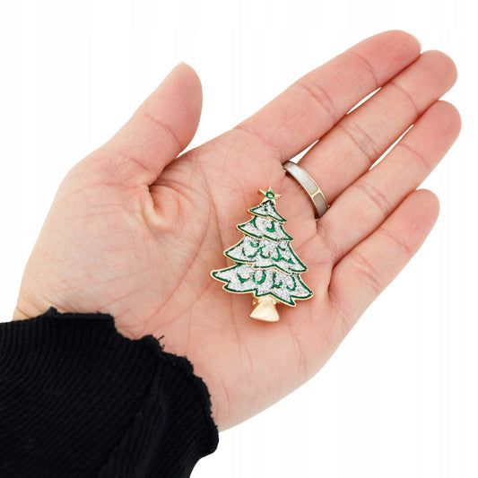 Broszka świąteczna Choinka - zielono-złota, brokatowa - Pinets