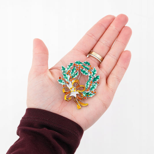 Pinets - Świąteczna Broszka Wianek z Ostrokrzewu - Zieleń Złoto Kryształki