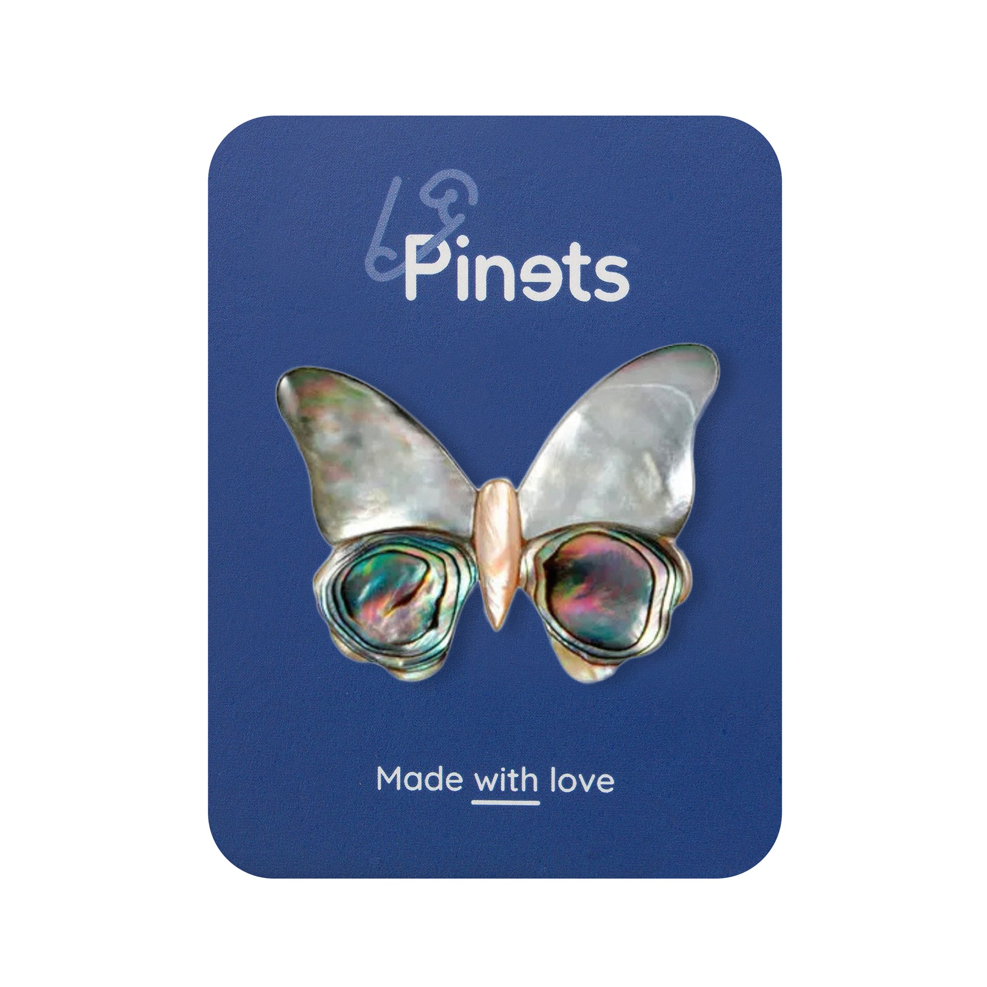 Lassen Sie Ihrer Fantasie freien Lauf und verschönern Sie Ihr Outfit mit dieser märchenhaften Brosche! Ihr einzigartiges Design wird jeden begeistern, den Sie auf der Straße treffen. Dieser Perlmutt-Schmetterling ist eine bezaubernde Ergänzung für jedes Damenoutfit.