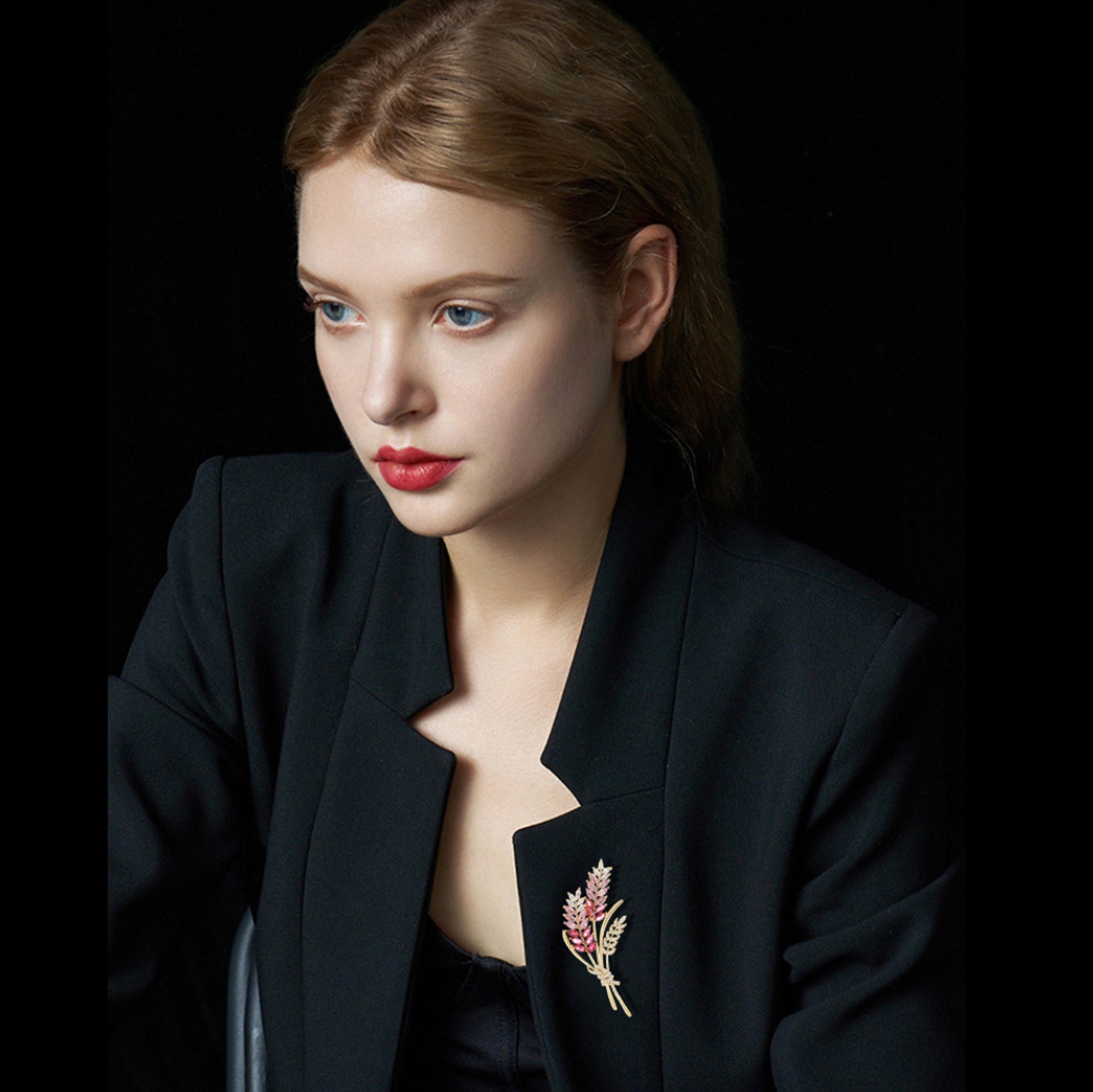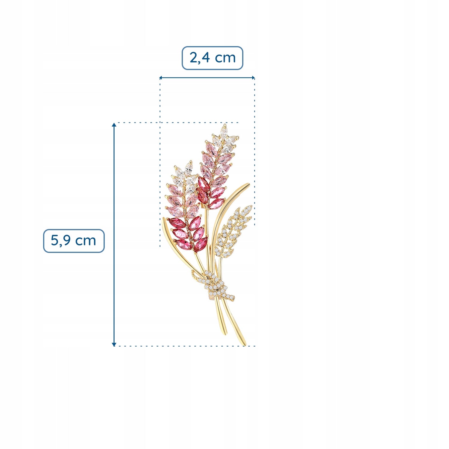 Getreideähren sind ein Symbol für Überfluss, Wohlstand und Fruchtbarkeit. Diese Getreideährenbrosche ist ein außergewöhnlich elegantes und originelles Accessoire, das jedes Outfit perfekt ergänzt. Sie besteht aus robustem, 14-karätig vergoldetem Metall und ist mit rosa Zirkonen verziert, die für Glanz und Charme sorgen. Die Brosche ist leicht und angenehm zu tragen und eignet sich für den Alltag. Sie ist das perfekte Accessoire für Frauen, die originelle und einzigartige Accessoires schätzen.