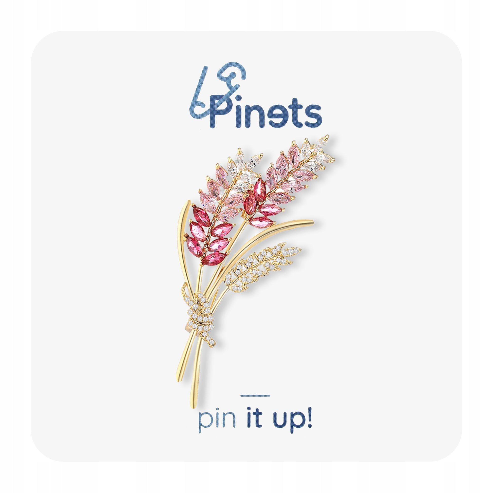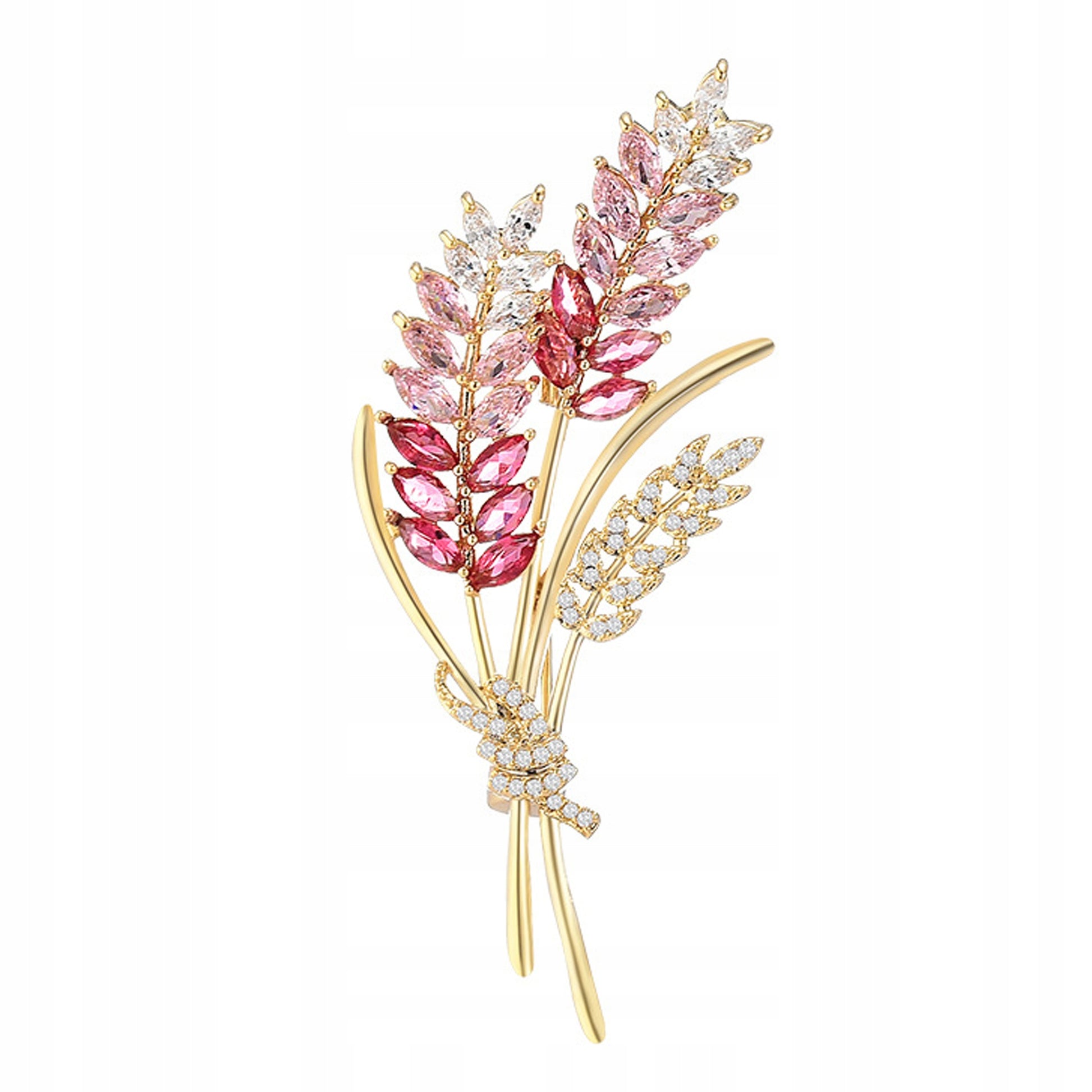 Getreideähren mit rosa Zirkonen – 14K vergoldete Brosche
